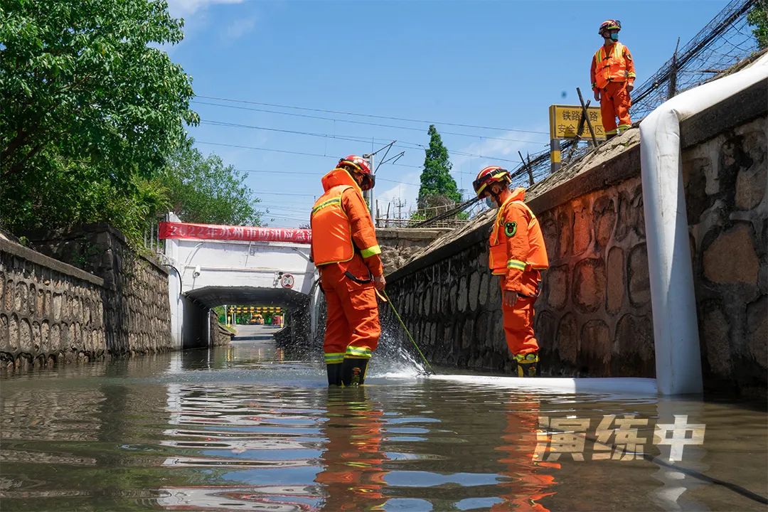 以受強(qiáng)對(duì)流天氣影響,蘇州市局部地區(qū)遭遇特大暴雨,導(dǎo)致陽(yáng)澄湖、京杭運(yùn)河水位快速上升,唯亭街道部分地段內(nèi)澇嚴(yán)重,急需搶救、轉(zhuǎn)移、安置受災(zāi)群眾為背景:市級(jí)演練模擬雙馬街下穿滬寧鐵路通道排水泵房停電,通道內(nèi)大量積水觸發(fā)防汛監(jiān)測(cè)警報(bào),園區(qū)、街道兩級(jí)立即組織疏導(dǎo)搶險(xiǎn)應(yīng)急;區(qū)級(jí)演練則模擬了某過(guò)渡房小區(qū)內(nèi)澇嚴(yán)重,部分居民受困,急需組織排澇和人員轉(zhuǎn)移的場(chǎng)景。