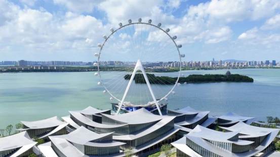 從空中俯瞰,金雞湖的浪漫圖景已然立體:水上,游船旅拍、桃花島草坪婚禮等解鎖湖光里的甜蜜;陸地,中法愛(ài)墻結(jié)婚登記點(diǎn)、13.14公里環(huán)湖步道、李公堤文創(chuàng)街區(qū)、蘇州當(dāng)代美術(shù)館,形成點(diǎn)線面聯(lián)動(dòng)的婚拍矩陣;空中,“蘇州之眼”摩天輪推出“云端告白”專屬轎廂,圓融天幕街打造“星空求婚”場(chǎng)景……這些并非孤立的打卡點(diǎn),而是被系統(tǒng)性地編織進(jìn)“甜蜜經(jīng)濟(jì)”的產(chǎn)業(yè)鏈條。商務(wù)區(qū)與喜筵網(wǎng)聯(lián)動(dòng),將聯(lián)合打造摩天輪求婚儀式、中法愛(ài)墻結(jié)婚登記、桃花島證婚儀式、中茵皇冠甲板婚禮等特色服務(wù)場(chǎng)景,水、陸、空三重浪漫交織相融,讓每一個(gè)浪漫瞬間都可定制、可消費(fèi)、可傳播。