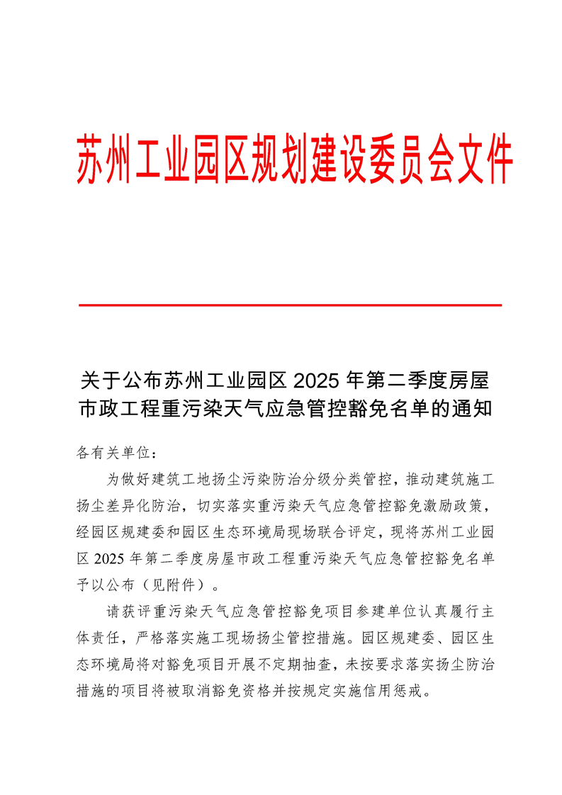 關(guān)于公布蘇州工業(yè)園區(qū)2025年第二季度房屋市政工程重污染天氣應(yīng)急管控豁免名單的通知-附件