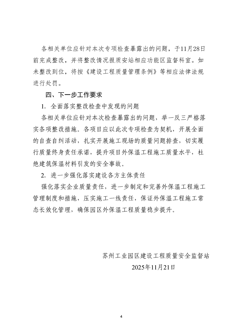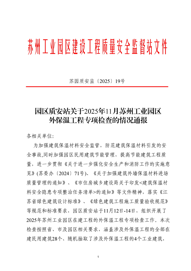 園區質安站關于2025年11月蘇州工業園區外保溫工程專項檢查的情況通報