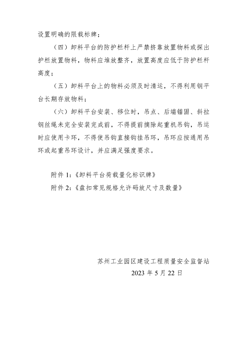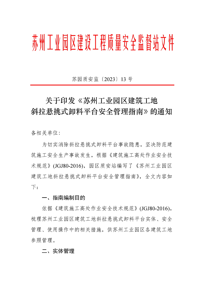 關于印發《蘇州工業園區建筑工地斜拉懸挑式卸料平臺安全管理指南》的通知