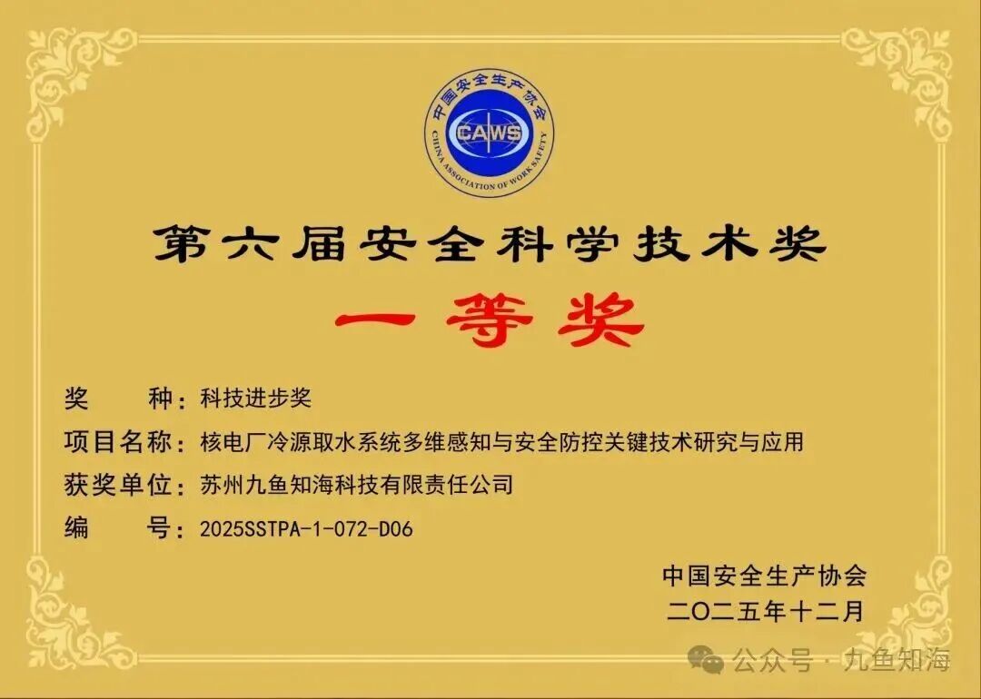 近日,蘇州工業(yè)園區(qū)科技招商中心引進(jìn)企業(yè)——蘇州九魚知海科技有限責(zé)任公司(以下簡稱“九魚知海”)榮獲第六屆安全科學(xué)技術(shù)獎科技進(jìn)步獎一等獎。