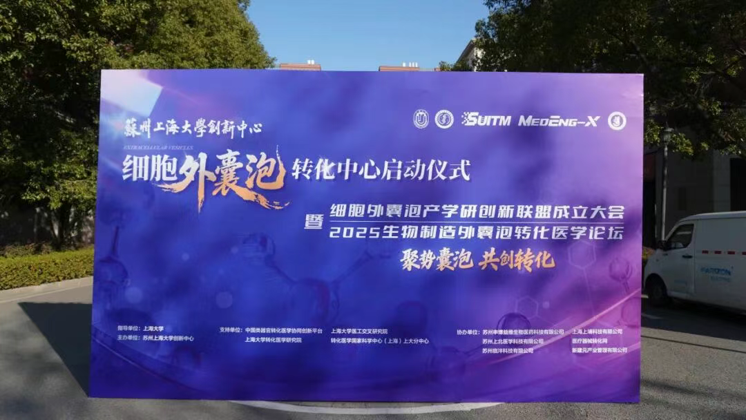 活動伊始,蘇州上海大學(xué)創(chuàng)新中心細(xì)胞外囊泡轉(zhuǎn)化中心正式揭牌啟動。該中心以上海大學(xué)細(xì)胞外囊泡研究中心為重要支撐,深度整合國內(nèi)外知名高校與領(lǐng)軍企業(yè),致力于攻克細(xì)胞外囊泡在規(guī)模化制備、標(biāo)準(zhǔn)化鑒定、工程化修飾及臨床轉(zhuǎn)化應(yīng)用中的核心技術(shù)瓶頸,打造國際一流的研發(fā)與轉(zhuǎn)化平臺。