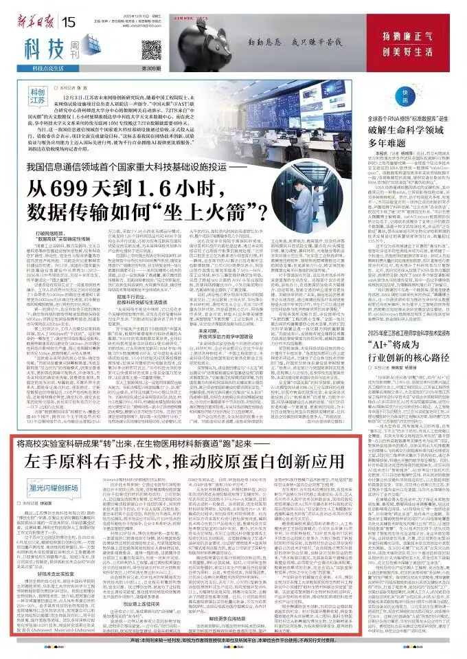 位于蘇州工業(yè)園區(qū)的博創(chuàng)生物,自2022年6月成立以來,瞄準膠原蛋白創(chuàng)新應用,一方面成功量產高純度、高活性的膠原蛋白,一方面利用新技術將膠原蛋白研制成人工角膜基質片、口腔骨組織引導膜等產品。短短3年半,該公司完成3輪融資,獲評高新技術企業(yè)和“科創(chuàng)未來之星”企業(yè)。