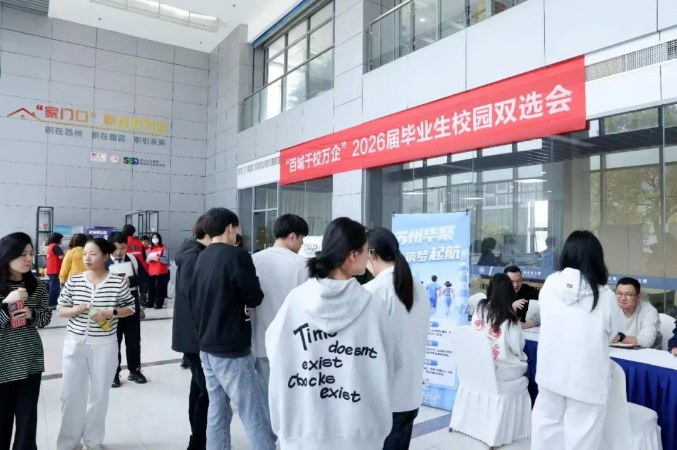 近日,蘇州工業(yè)園區(qū)服務(wù)外包職業(yè)學(xué)院舉辦2026屆畢業(yè)生校園雙選會,“家門口”就業(yè)服務(wù)站內(nèi)人聲鼎沸。本次雙選會依托蘇州工業(yè)園區(qū)服務(wù)外包職業(yè)學(xué)院“家門口”就業(yè)服務(wù)站,助力畢業(yè)生精準(zhǔn)對接優(yōu)質(zhì)崗位實(shí)現(xiàn)高質(zhì)量就業(yè),為廣大青年學(xué)子鋪就實(shí)現(xiàn)職業(yè)夢想的踏實(shí)道路。雙選會現(xiàn)場,勝科納米(蘇州)股份有限公司、蘇州銳諾醫(yī)療技術(shù)有限公司、蘇州維納科技有限公司、蘇州微創(chuàng)軟件有限公司等40家用人單位,端出900余個(gè)優(yōu)質(zhì)崗位,受到廣大學(xué)生的歡迎。