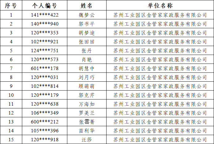 按照《關(guān)于印發(fā)<蘇州市家政服務(wù)業(yè)特崗補(bǔ)貼和社保補(bǔ)貼操作細(xì)則>的通知》(蘇人保農(nóng)〔2020〕2號(hào))文件規(guī)定,人社部門應(yīng)健全補(bǔ)貼前的公告公示制度。公示自發(fā)布之日起,期限為7個(gè)工作日,如對(duì)以上公示內(nèi)容有異議,請(qǐng)向園區(qū)就業(yè)管理服務(wù)中心反映。