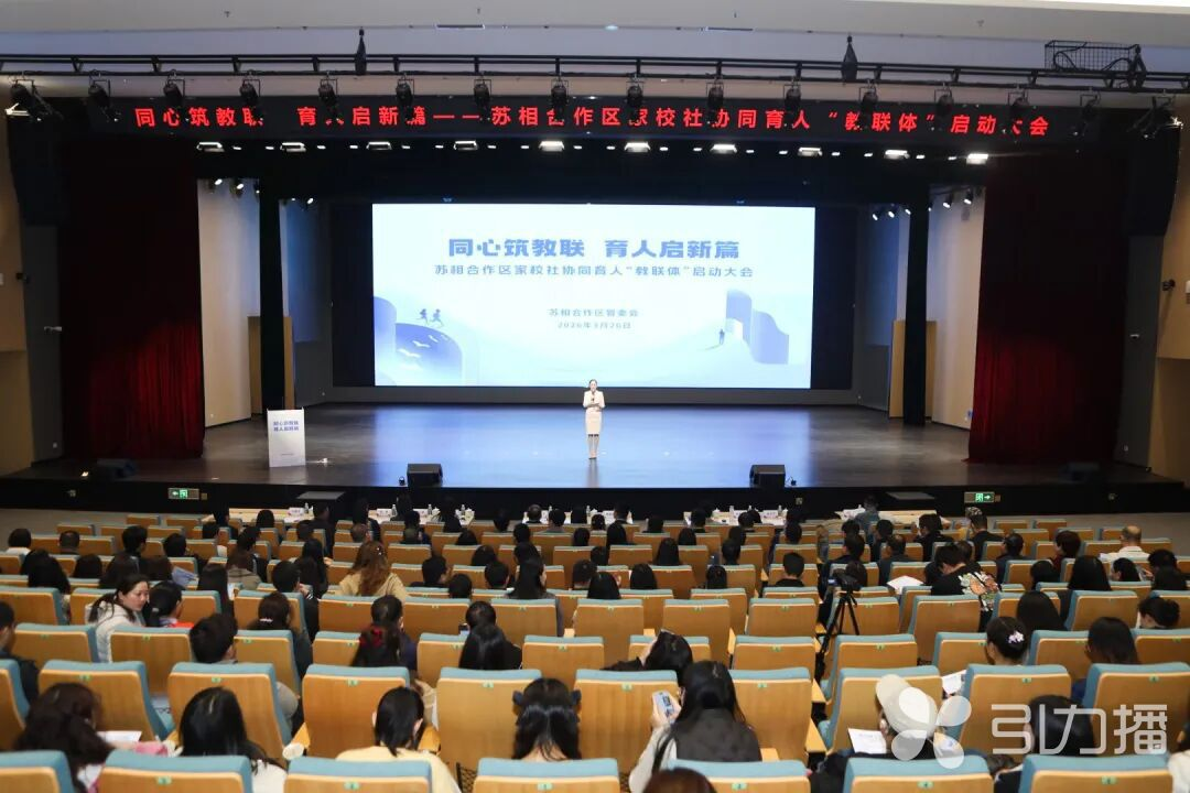 引力播 3月26日下午,蘇相合作區(qū)家校社協(xié)同育人“教聯(lián)體”啟動(dòng)大會(huì)在蘇相實(shí)驗(yàn)學(xué)校舉行,一批具體項(xiàng)目、研學(xué)基地和實(shí)踐基地在啟動(dòng)會(huì)上集中落地。據(jù)悉,蘇相合作區(qū)家校社協(xié)同育人“教聯(lián)體”的正式啟動(dòng),標(biāo)志著區(qū)域教育融合創(chuàng)新邁入新階段。