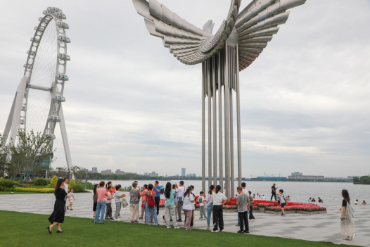在金雞湖右岸,了解“飛翔”雕塑的藝術設計和文化內涵,遠眺現代化城市建設成就和宜居景觀。