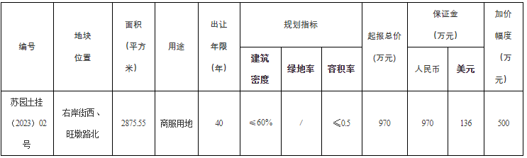 蘇州工業園區規劃建設委員會授權蘇州工業園區土地儲備中心負責有關本次網上掛牌出讓土地的具體組織和情況咨詢。