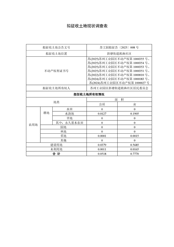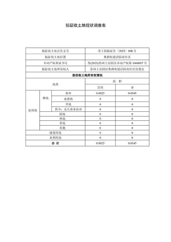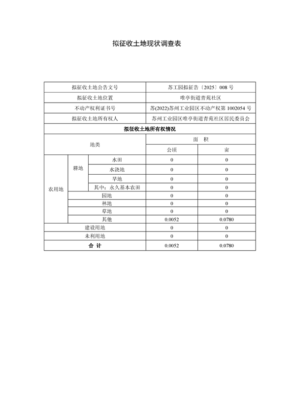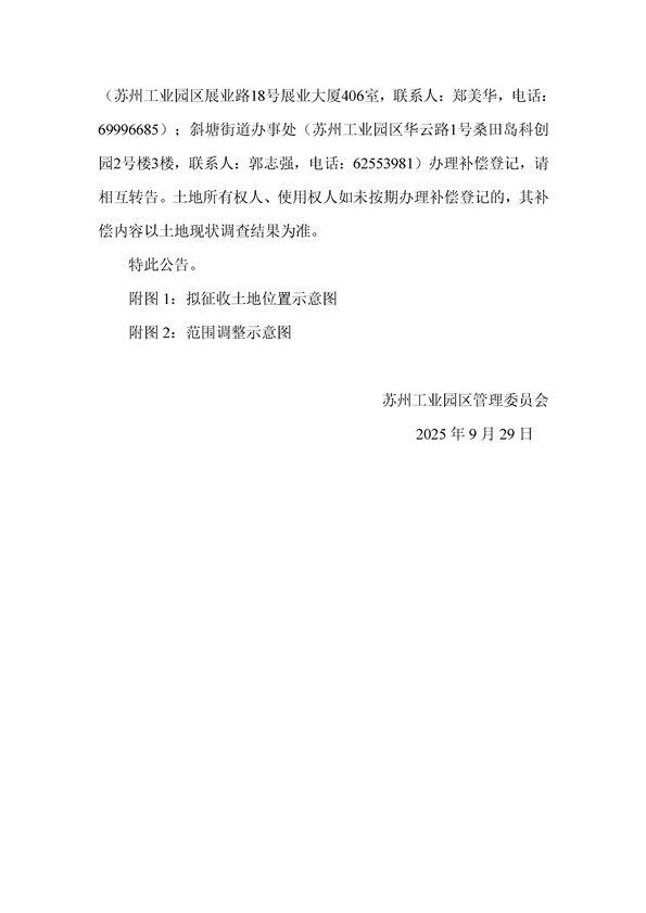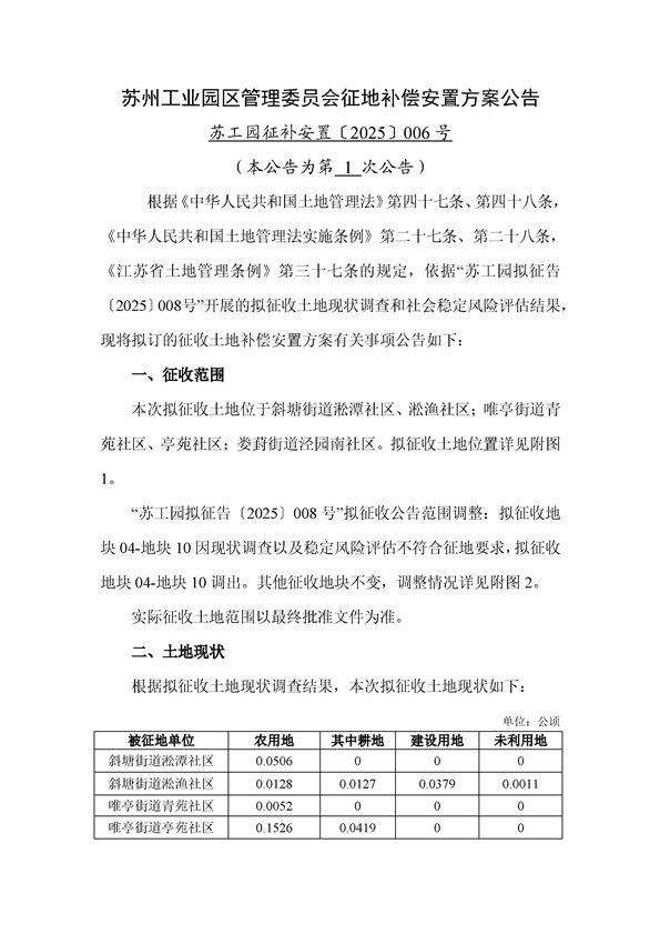 蘇州工業(yè)園區(qū)管理委員會(huì)征地補(bǔ)償安置方案公告(蘇工園征補(bǔ)安置〔2025〕006號(hào))