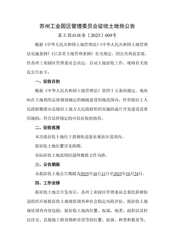 蘇工園擬征告〔2025〕009號(hào)--征收土地預(yù)公告