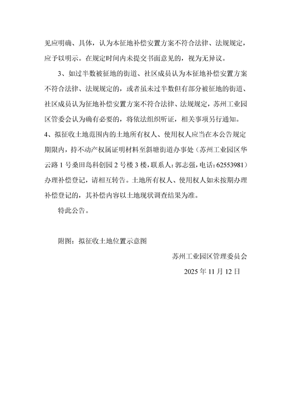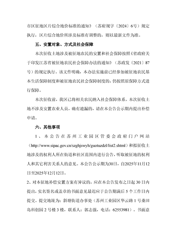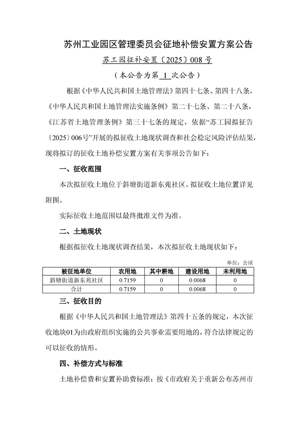 蘇州工業(yè)園區(qū)管理委員會征地補償安置方案公告(蘇工園征補安置〔2025〕008號)