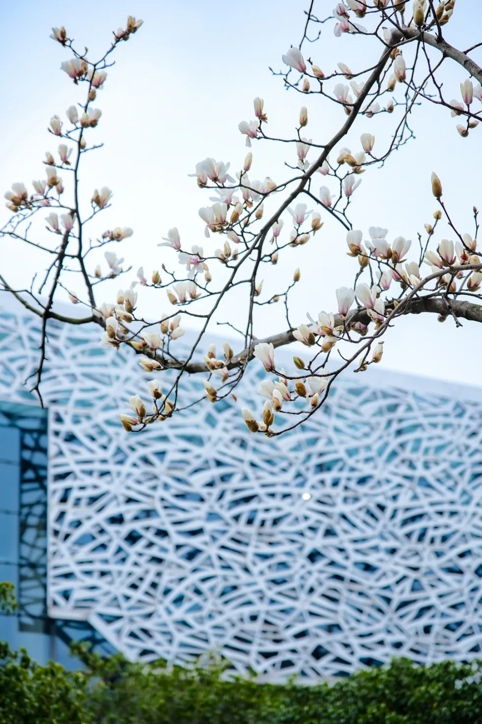 作為春信的使者,玉蘭花用一場無需綠葉襯托的綻放,喚醒滿城春光。金雞湖畔,以城市地標東方之門為背景,一樹樹玉蘭亭亭玉立枝頭,盡顯清雅。從蘇州小“鳥巢”到春到湖畔廣場,從白塘公園到半月灣,漫步玉蘭樹下,潔白似雪、粉紫若霞的花朵與城市建筑、藍天白云相映襯,將春日的氛圍感直接拉滿。