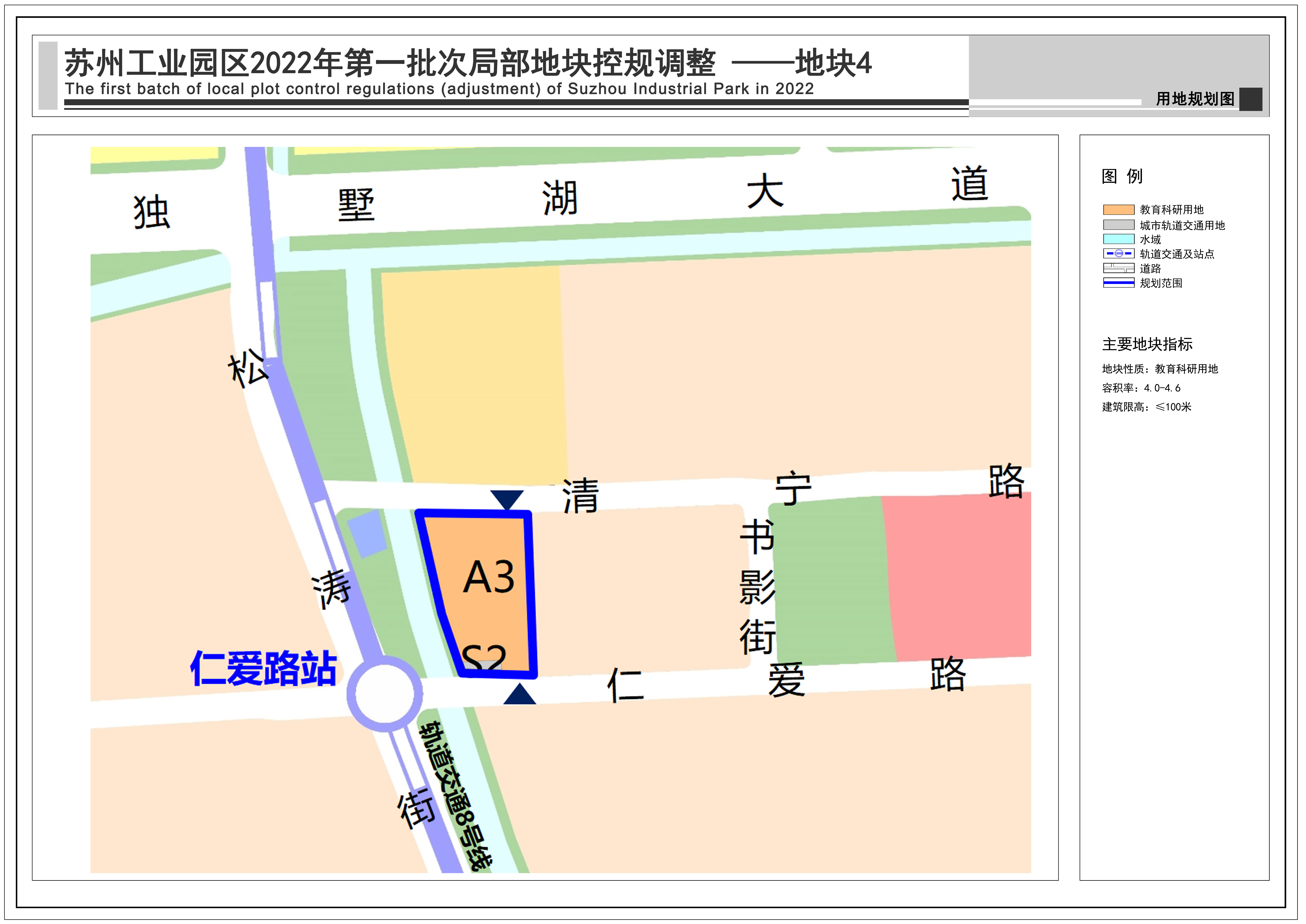 為適應片區發展需求,地塊性質由教育科研用地調整為教育科研用地與城市軌道交通用地,并明確地塊指標。