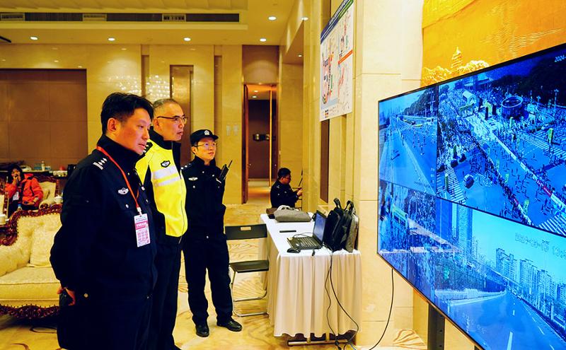 園區(qū)公安はさらに各方面を統(tǒng)括し、大會前の安全保障準備を萬全にし、大會管理措置を著実に実施し、場外の便民サービスを最適化にした。ドローンを使用してコース全域を巡回監(jiān)視し、総合法執(zhí)行、市政管理、消防救助、巡回警備など外部の各方面の力との協(xié)調(diào)を強化し、園區(qū)公安情報指揮センター、現(xiàn)場指揮部と協(xié)力して、現(xiàn)場の人流、秩序、治安などの情報を把握し、大會の安全を力強く保障した。