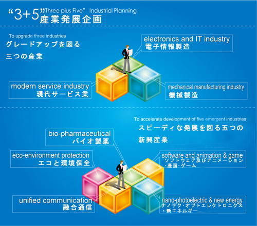 蘇州工業(yè)園區(qū)は産業(yè)の合理化を構造転換及びグレード?アップの主要手段とし、全面的に「3+5」産業(yè)発展の企畫を実施し、ハイテク技術産業(yè)を主導に、ハイレベル製造業(yè)を柱に、現代サービス業(yè)を支えにする先進的な産業(yè)體系を積極的に構築する。