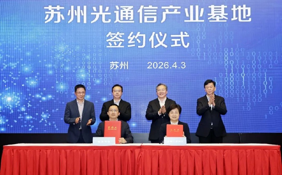 4月3日、蘇州光通信産業(yè)基地調(diào)印式が行われた。蘇州市委員會(huì)書(shū)記の範(fàn)波氏、蘇州旭創(chuàng)科學(xué)技術(shù)有限公司創(chuàng)始者兼最高経営責(zé)任者の劉聖氏が調(diào)印式に出席し、共に蘇州光通信産業(yè)基地及び産學(xué)研協(xié)力プラットフォームの除幕を行った。