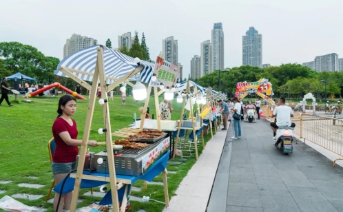 星光、草地、音樂、夜市一鍵開啟“夜嗨”模式“班味”消散,“松弛感”拉滿探尋市井里的“煙火味道”舞臺下是“幸福夜市”,政策宣傳、非遺漆扇體驗(yàn)、DIY串珠手鏈、童年回憶雜貨鋪等20多個(gè)特色攤位聚集于此,打造“別YOUNG”的“歡慶之夜”,吸引廣大轄區(qū)青年前來“趕集”打卡,煥新勝浦夜經(jīng)濟(jì)新活力。在享受音樂的同時(shí),現(xiàn)烤魷魚、鐵板豆腐、燒烤大肉串、長沙臭豆腐、非遺糖畫、鮮榨果汁、手磨咖啡等各種美食也在一次又一次沖擊著大家的味蕾,現(xiàn)場一根根“烤串兒”、一聲聲“干杯”此起彼伏,這場盛宴讓每個(gè)人都感受到“煙火人間”。