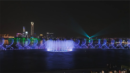 與“蘇州之眼”隔湖相望的,是同樣具有浪漫基因的金雞湖音樂噴泉。去年,金雞湖光影水秀體系整體完成升級改造,音樂噴泉的曲目編排、水形設計均進行了更新。經過重新編排的曲目既體現蘇州元素,又融入現代韻味,與園區多元包容的城市特質相得益彰;噴泉水形設計則與音樂充分聯動,可呈現溫婉精致、恢弘壯觀等不同的視覺場景。游逛金雞湖,“蘇州之眼”×金雞湖音樂噴泉的奇妙組合,將讓游客擁有與眾不同的游玩體驗。