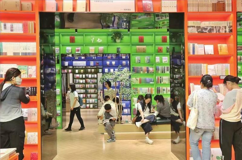 昨天下午,園區(qū)誠(chéng)品書店內(nèi)人氣滿滿,有家長(zhǎng)帶著孩子一起徜徉書海。 記者 倪黎祥攝