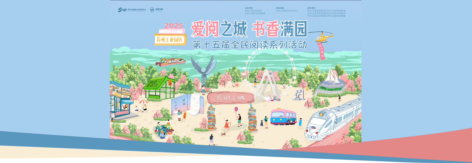 歷經十余年發展,蘇州工業園區全民閱讀系列活動已然成為園區一張閃亮的“文化名片”。本屆活動由蘇州工業園區宣傳部、蘇州工業園區文體旅游局主辦,蘇州工業園區公共文化中心承辦,園區各街道、閱讀聯盟共同協辦,從“閱讀空間”到“文化生態”,帶領大家“越”過山海,“悅”享盛宴,“閱”向未來,解鎖閱讀的更多美好。