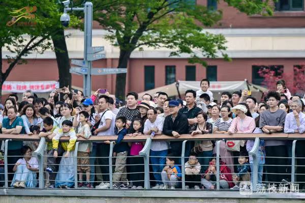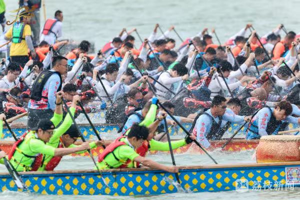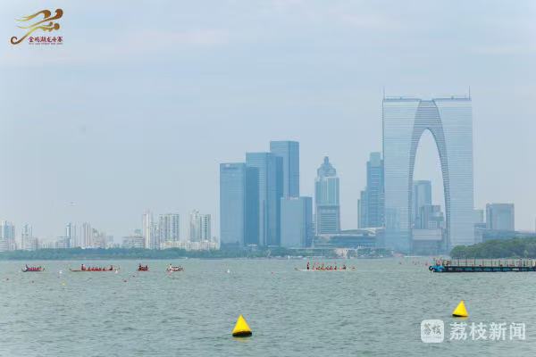 金雞湖上,一艘艘龍舟上演百龍爭(zhēng)渡,龍舟隊(duì)員們齊心協(xié)力、揮槳如飛,向著終點(diǎn)全力沖刺。現(xiàn)場(chǎng),既有專(zhuān)業(yè)隊(duì)伍的速度與激情,也有國(guó)際友人解鎖“龍舟新姿勢(shì)”,彰顯著“龍舟精神”的多元魅力。如今,金雞湖端午龍舟賽已經(jīng)成為蘇州的新民俗,吸引了眾多的市民和游客前來(lái)觀賽,為自己喜愛(ài)的隊(duì)伍加油助威。