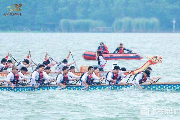 69支中外龍舟隊(duì)爭(zhēng)渡蘇州金雞湖