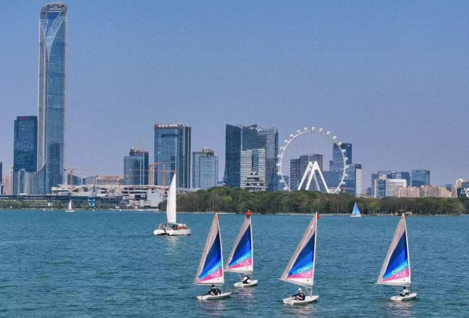 近年來,園區依托豐富的水域資源,積極推動水上運動多元化、專業化發展。金雞湖風之園是帆船愛好者的聚集地,凱賓斯基碼頭是速度控的天堂,斜塘河則是追求文藝氛圍、攝影打卡、放空休閑的慢時光之選。
