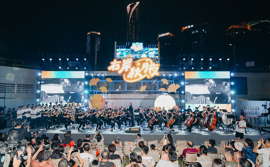 暮色漸染,右岸下沉式廣場奏響蘇州交響樂電影音樂會。一串串躍動的音符、一首首經典的旋律,穿越光影與時空,與每個人心中的家國情懷達成情感共鳴,唱響對祖國的熱愛。