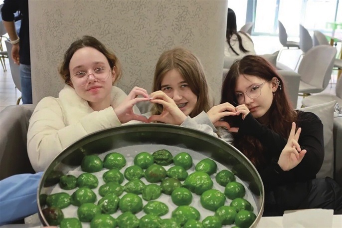 傳統文化的體驗,成為此行最濃墨重彩的一筆。清晨的操場上,德國師生在八段錦的一招一式中感受東方養生的平和律動;中文課堂里,一場以“星海”為主題的繞口令挑戰,讓客人們在唇齒開合間解鎖漢語音律的靈動魅力。在非遺工坊,竹絲在指間穿梭,一艘艘象征友誼的小船逐漸成型;食堂里,艾草的清香彌漫,中德師生一同揉面、包餡、蒸煮,在江南春日的煙火氣中品味青團子的清甜。