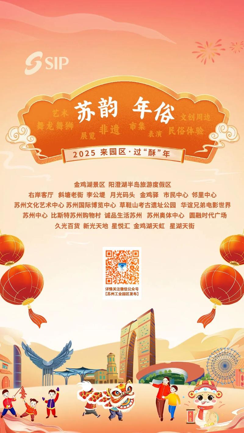 來園區(qū),過“酥”年!2025年將迎來首個“非遺版”春節(jié),蘇州工業(yè)園區(qū)聚焦“商、旅、文”推出“來園區(qū)·過‘酥’年”系列活動,圍繞四大主題,“嗨購樂享”“惠游暢玩”“蘇韻年俗”“悅宿歡娛”,開展精彩紛呈的特色活動,營造濃厚熱烈的節(jié)日氛圍,助力游客市民惠游園區(qū),全方位展示園區(qū)蘇韻年味,進一步推動文旅消費市場蓬勃發(fā)展。第三期“蘇韻年俗”攻略趕快收藏吧!