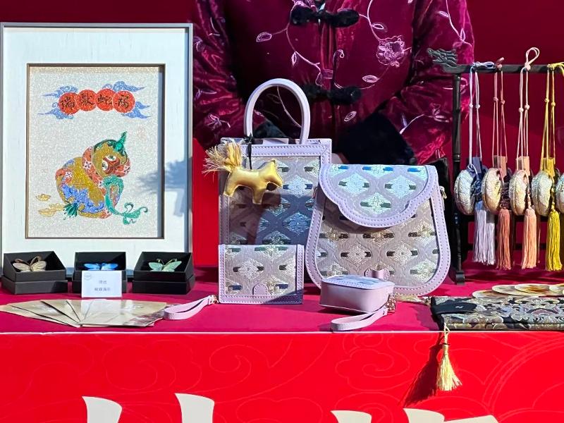 此次參展,仁和織繡充分結合蛇年、非遺等主題,帶來了一系列兼具藝術價值和實用功能的新品,并搭配傳統的福字擺件、香囊等產品傳遞濃濃的新春祝福。現場的緙絲“學習機”也吸引了眾多市民游客參與體驗。“我們將充分發揮非遺傳承保護單位的優勢,聚焦非遺做好宣傳、推廣,以及色彩教育的科普工作。”謝晴容介紹說。