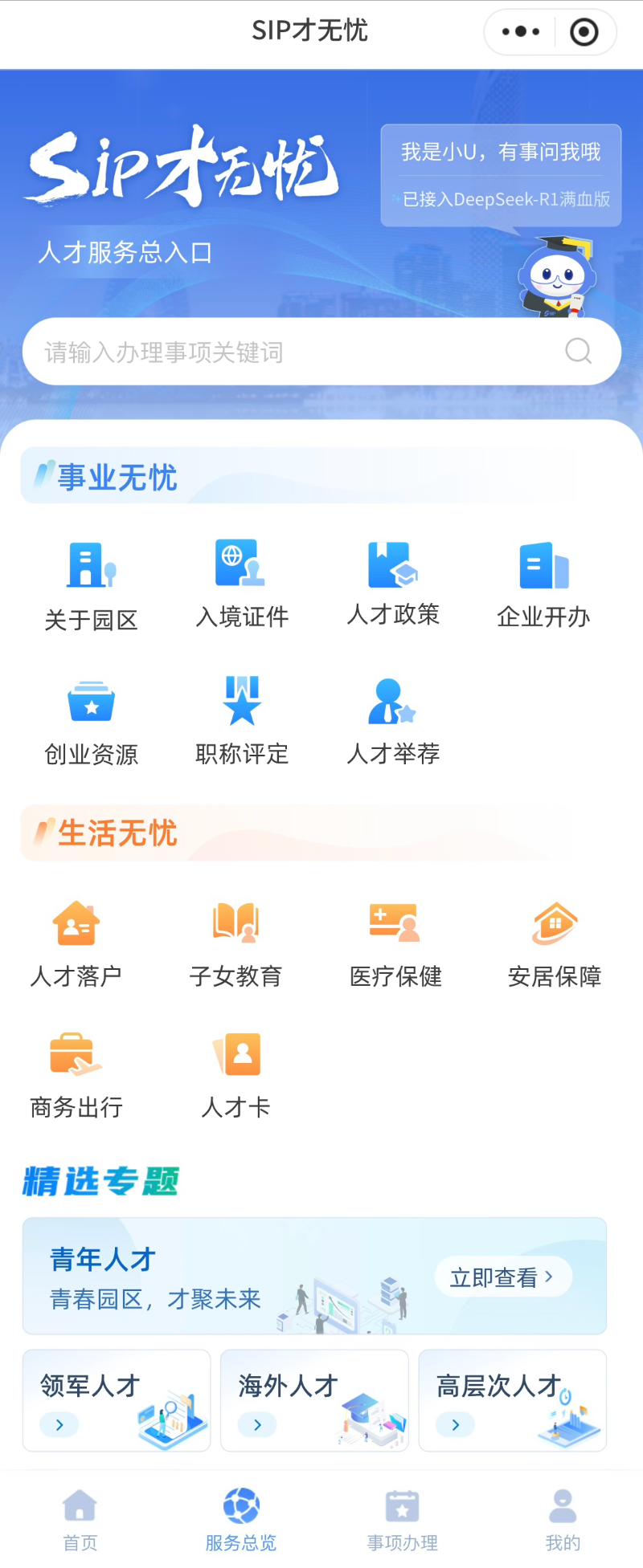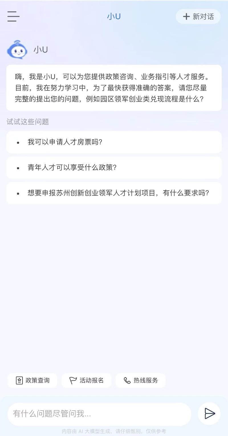 “SIP才無憂”深度聚焦提升人才的使用體驗,通過接入DeepSeek-R1“滿血版”,全新推出首個高智版AI助手“小U”,構建智能化人才服務體系,實現(xiàn)“政策秒配、服務無界”。