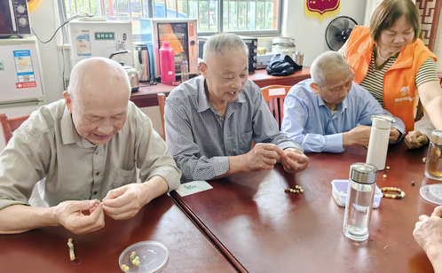 面對(duì)銀齡群體精神文化供給不均衡現(xiàn)狀,蓮韻社區(qū)日間照料中心創(chuàng)新打造“藝趣工坊”,推出菩提串珠、水晶花藝、綠植盆栽等手工課程,為長(zhǎng)者搭建了一座“精神糧倉”,在創(chuàng)造中重拾生活意趣。在紅色管家志愿者的指導(dǎo)下,一顆顆菩提籽在指尖串聯(lián)成寓意吉祥的珠鏈,晶瑩剔透的水晶花在巧手下綻放出別樣光彩,充滿生機(jī)的綠植盆栽在精心照料中煥發(fā)盎然綠意,這些手工項(xiàng)目宛如“生活的調(diào)色盤”,不僅成為疏解孤獨(dú)感的“情緒減壓閥”,更以美育浸潤(rùn)煥發(fā)銀齡精神風(fēng)貌,推動(dòng)社區(qū)文化服務(wù)從零散活動(dòng)向常態(tài)化滋養(yǎng)體系躍升,為精塑“雅趣共生”服務(wù)格局注入鮮活脈動(dòng)。