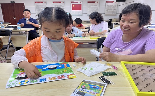 在活動室內(nèi),孩子們專注地將五彩斑斕的紐扣粘貼在畫板上,拼貼出救生圈、安全警示牌等防溺水主題圖案。每一粒紐扣的鑲嵌,都是安全知識在指尖的傳遞與深化。畫作完成后,孩子們紛紛走上小講臺,自信滿滿地分享自己精心準備的防溺水小故事。稚嫩而認真的童聲講述著河湖暗藏的危險與自救互救的智慧,讓“珍愛生命,謹防溺水”的警鐘在每一位參與者心中清晰回響。