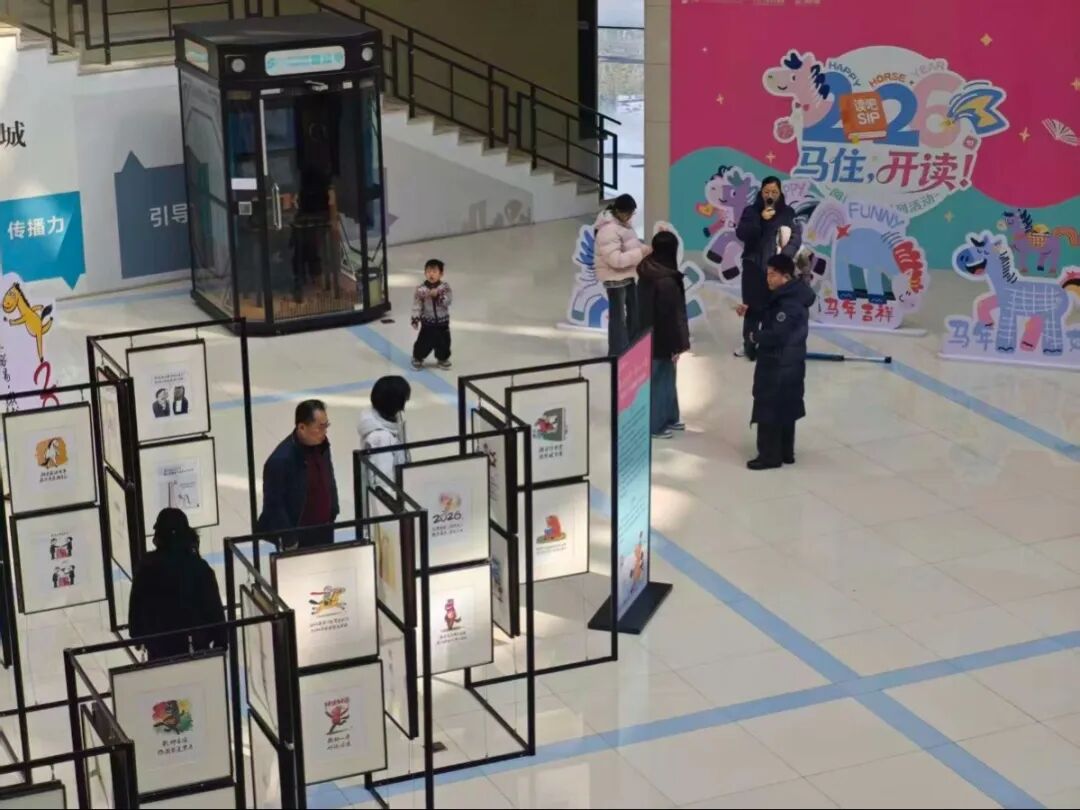此外,蘇州知名漫畫家阿濤老師還為丙午新春獻上了一份特別賀禮。走進圖書館一樓大廳,百幅圍繞生肖“馬”創(chuàng)作的幽默漫畫,或諧音雙關,或妙解成語,將生活的智慧融于方寸之間,讓讀者們仿佛踏入了一個充滿巧思與歡笑的“精神牧場”。