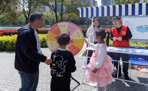 移步“目”點(diǎn),節(jié)水大轉(zhuǎn)盤前圍滿了躍躍欲試的居民。轉(zhuǎn)盤轉(zhuǎn)動(dòng),指針停留,志愿者隨機(jī)抽取一道與場景相關(guān)的節(jié)水問題進(jìn)行提問。“淘米水可以做什么?”“洗車時(shí)應(yīng)該用什么方式更節(jié)水?”……孩子們爭先恐后地回答,答對(duì)者歡呼雀躍,答錯(cuò)者也在志愿者的耐心科普中獲得重答機(jī)會(huì)。歡聲笑語間,節(jié)水知識(shí)悄然入心。