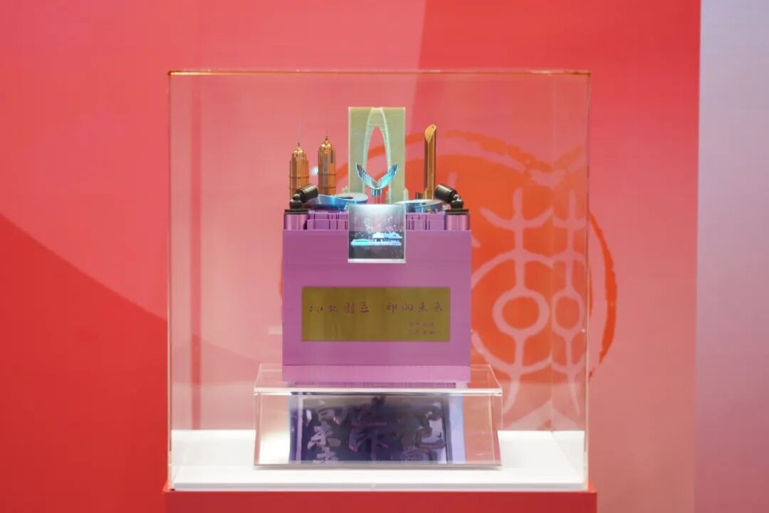展覽突破傳統(tǒng)展陳模式,以“科技+藝術(shù)”賦能文化傳播。主題印章以園區(qū)標志性建筑為主體造型,運用全息棱鏡技術(shù)動態(tài)呈現(xiàn)。參展作品除傳統(tǒng)印材外,更創(chuàng)新采用陶瓷、樹脂、空心玻璃微珠等十余種新材料,機器刻制、3D打印、激光雕刻等科技治印方法廣泛應(yīng)用。