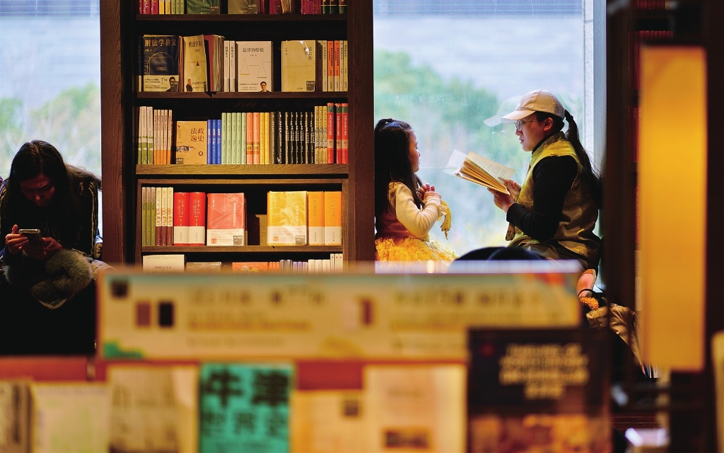 寒假伊始,不少青少年走進書店沉浸書海,開啟一個快樂充實的假期。圖為昨天,園區誠品書店內,家長帶著孩子共沐書香。
