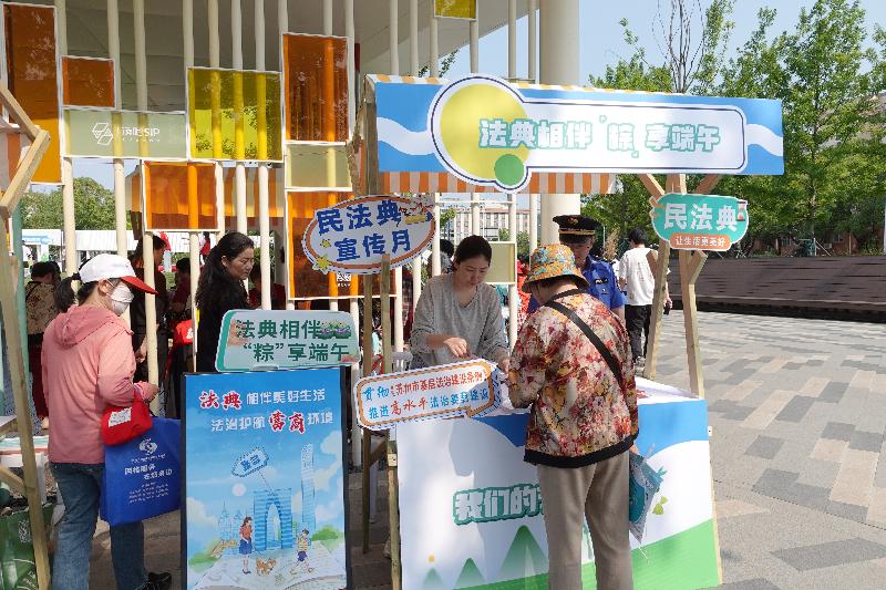 今年5月是第五個“民法典宣傳月”。蘇州工業園區以“美好生活·法典相伴”為主題,通過線上線下相結合、集中宣傳與精準服務并行的方式,開展了一系列民法典宣傳活動,全方位、多層次推進民法典宣傳工作,努力讓尊法學法守法用法在全區蔚然成風。