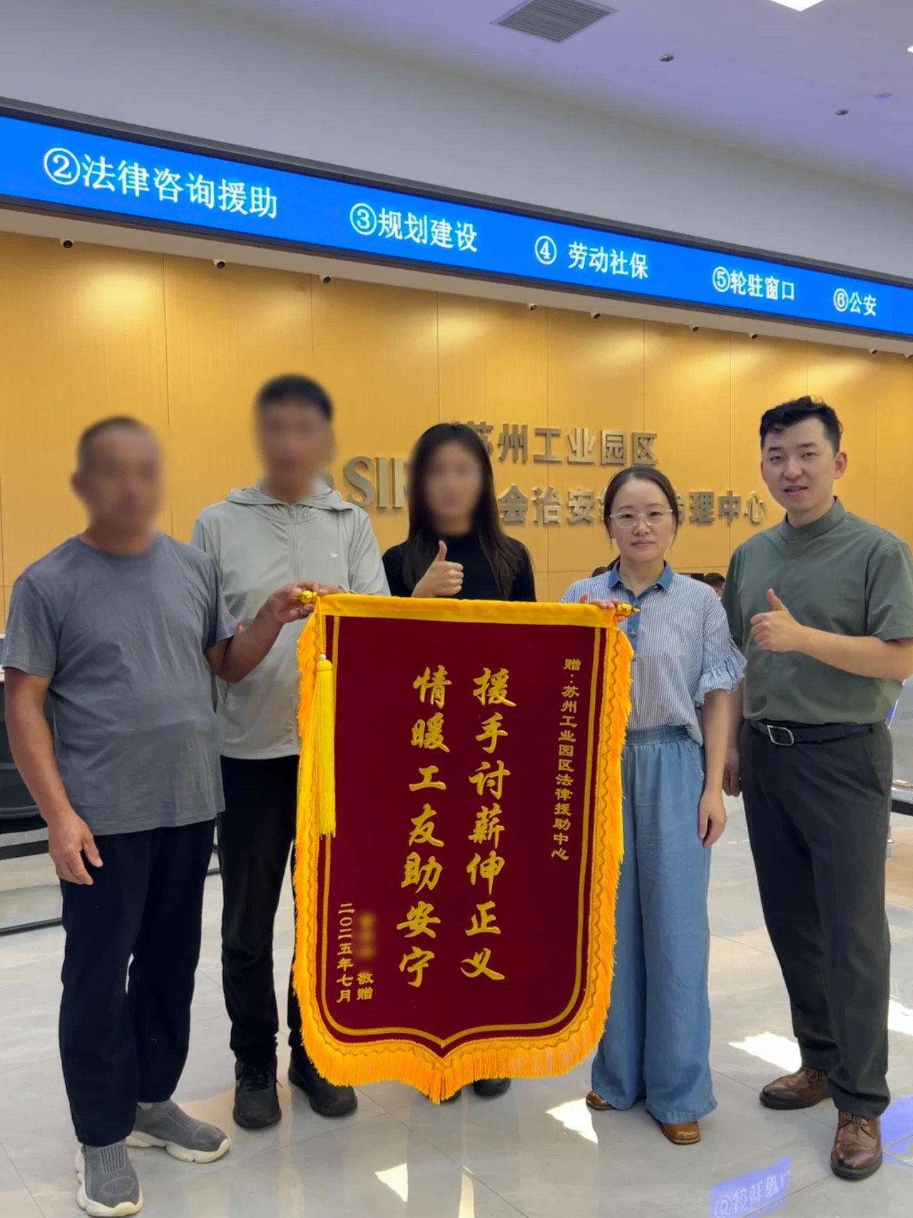 園區(qū)法律援助中心當(dāng)天即指派專業(yè)律師團(tuán)隊(duì)介入。考慮到受援人普遍年事已高、行動(dòng)不便,承辦律師主動(dòng)上門服務(wù),逐人梳理證據(jù)材料、核算欠薪金額,并協(xié)助推選訴訟代表人。同時(shí),園區(qū)法律援助中心將案件線索移送檢察院,啟動(dòng)民事支持起訴程序,并聯(lián)合信訪、人社、規(guī)建等部門開展調(diào)解工作。經(jīng)過多方共同努力,7月20日,用工單位全額支付23萬(wàn)元欠薪,52名老人都當(dāng)場(chǎng)領(lǐng)到了被拖欠的勞務(wù)費(fèi)。事后,工人代表及家屬專程向園區(qū)法律援助中心贈(zèng)送錦旗表達(dá)謝意。