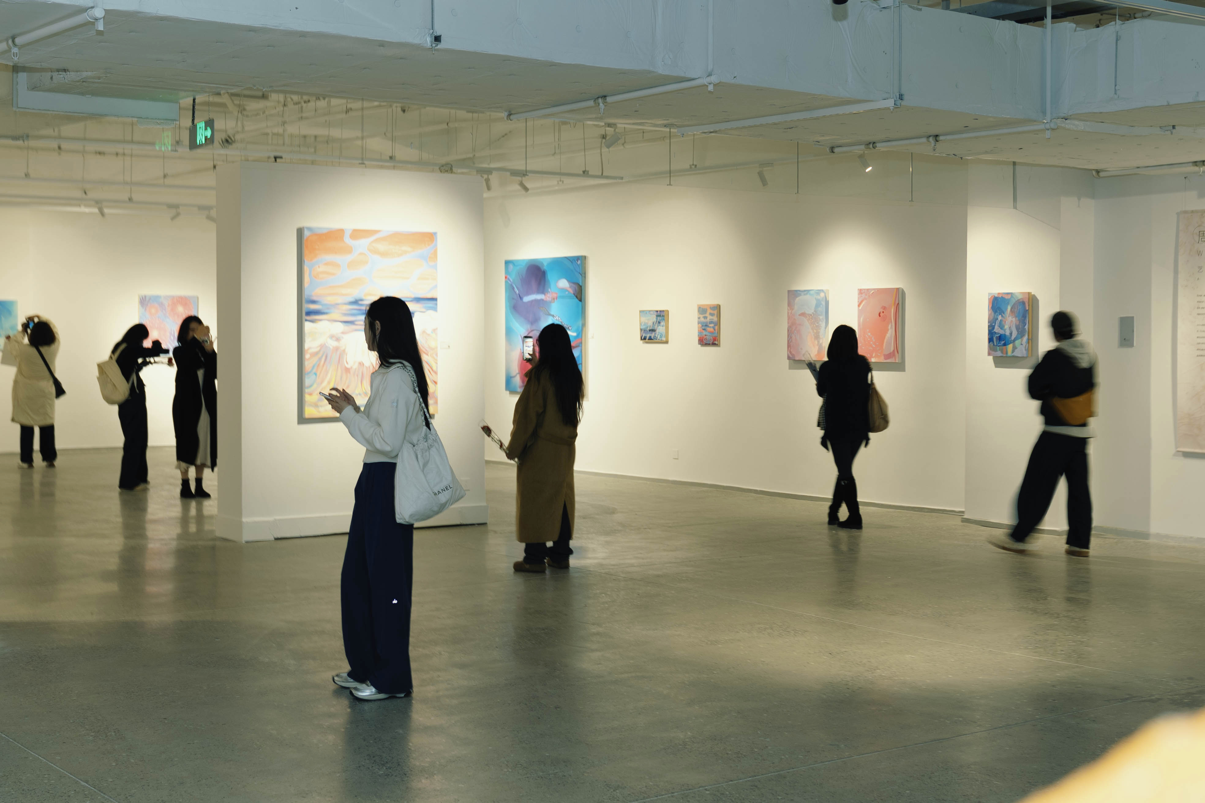 譚坤的創(chuàng)作摒棄了對現(xiàn)實的復(fù)刻,以王爾德童話為創(chuàng)作靈感,憑借極具張力的色彩堆疊、細(xì)膩的符號編碼與富有敘事感的筆觸,將虛幻的精神投射與自然的生命秩序巧妙并置,悄然叩問“真實與虛構(gòu)的邊界”這一深刻命題。觀者漫步于展廳之中,在色彩與符號的交織碰撞里,得以窺見內(nèi)心深處的真實自我,完成一場與自我的溫柔對話。從女性自我意識的覺醒,到個體感知的重構(gòu);從對固有標(biāo)簽的解構(gòu),到對精神世界的探索,兩場展覽雖各有側(cè)重,卻共同傳遞著“尊重差異、擁抱自我”的核心主張。