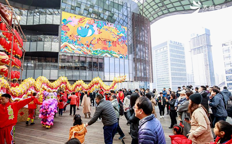 Many shopping malls in SIP, including Suzhou Center Mall, Suzhou Shin Kong Place and Suzhou Stage Outlets, offered dragon and lion dancing performances on the Spring Festival as a token of good wishes for the customers and passersby.