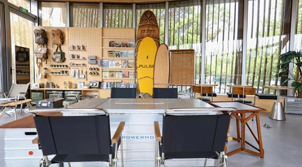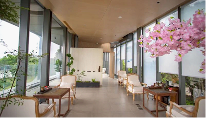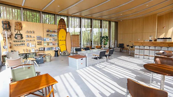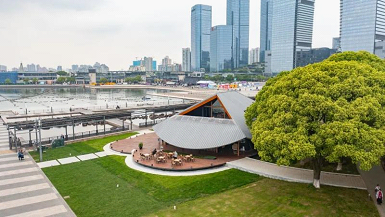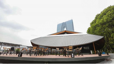 The “cabin”, one of the service stations, boasts an outdoor bar surrounded by the camphor tree wood near the Oriental Arc, an iconic building in SIP, and a terrace where guests can look far into the distance. The total floor area of the service station is about 400 square meters. The illy coffee provided here is worth a try.