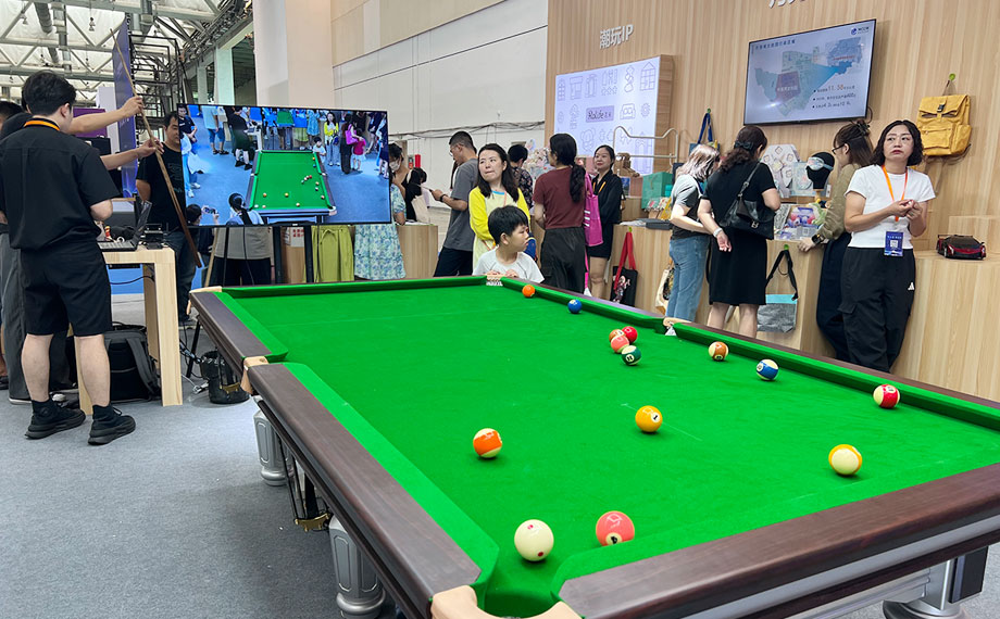 At another booth, the intelligent system for live-broadcasting billiards games amazed the visitors. After the cue ball is struck, the video camera automatically switches the lens, and simultaneously collects and presents the game data.