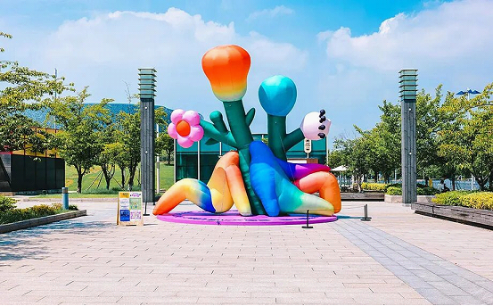 Also at the 688 Arts & Fashion Space, four sets of inflatable installations created by Jocelyn Tsaih, an artist from New York, are eye-catching.