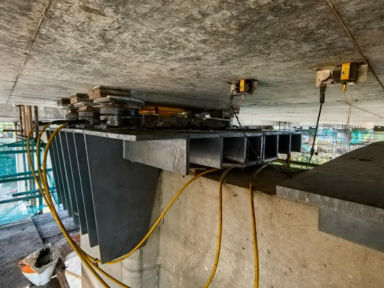 For the first time, the group applied the PLC synchronous lifting technology on a large scale. Based on the hydraulic synchronous control technology, large-tonnage, ultra-thin jacks and high-precision sensors were used, and the central control system collected data in real time and dynamically adjusted the lifting force to achieve smooth and uniform beam lifting. All old rubber bearings were replaced with more durable pot bearings.