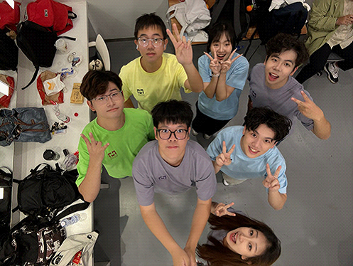 Another photo, from a third-year student, records a moment of the XJTLU Choir waiting backstage for a performance at the 2025 orientation ceremony.