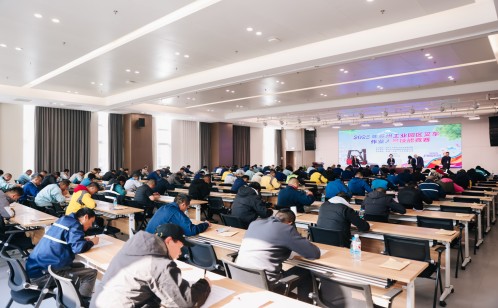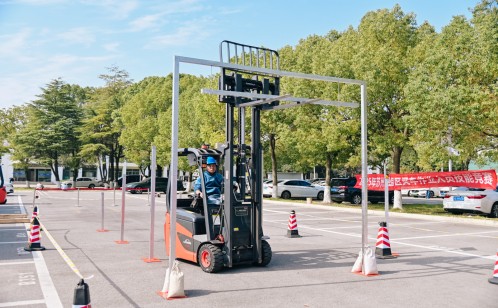 競(jìng)賽設(shè)置預(yù)賽與決賽兩個(gè)階段,全方位檢驗(yàn)選手綜合素養(yǎng)。預(yù)賽環(huán)節(jié)采用“理論+實(shí)操”的考核模式:理論測(cè)試涵蓋叉車安全操作規(guī)程、設(shè)備日常維護(hù)、應(yīng)急處置流程及相關(guān)法律法規(guī)知識(shí),重點(diǎn)考察選手安全理論功底與合規(guī)意識(shí);實(shí)操項(xiàng)目為電動(dòng)平衡重叉車帶托盤競(jìng)速繞樁,選手需在5分鐘內(nèi)完成“叉取托盤—轉(zhuǎn)運(yùn)堆疊—指定存放—倒庫停車”全流程,考驗(yàn)精準(zhǔn)操控與高效作業(yè)能力。經(jīng)綜合評(píng)定,40名選手憑借過硬實(shí)力脫穎而出,晉級(jí)決賽。