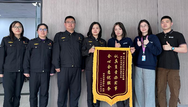 近日,某企業(yè)將一面印有“認(rèn)真負(fù)責(zé)辦實(shí)事,全心全意優(yōu)服務(wù)”字樣的錦旗送到蘇州工業(yè)園區(qū)市場(chǎng)監(jiān)督管理局高端制造與國(guó)際貿(mào)易區(qū)分局工作人員手中,對(duì)分局在辦理食品經(jīng)營(yíng)許可服務(wù)過程中的耐心與專業(yè)指導(dǎo)表示感謝。一面錦旗,不僅是企業(yè)對(duì)工作人員服務(wù)態(tài)度與業(yè)務(wù)能力的肯定,也反映出分局在落實(shí)日常許可職能、規(guī)范服務(wù)流程方面取得的成效。